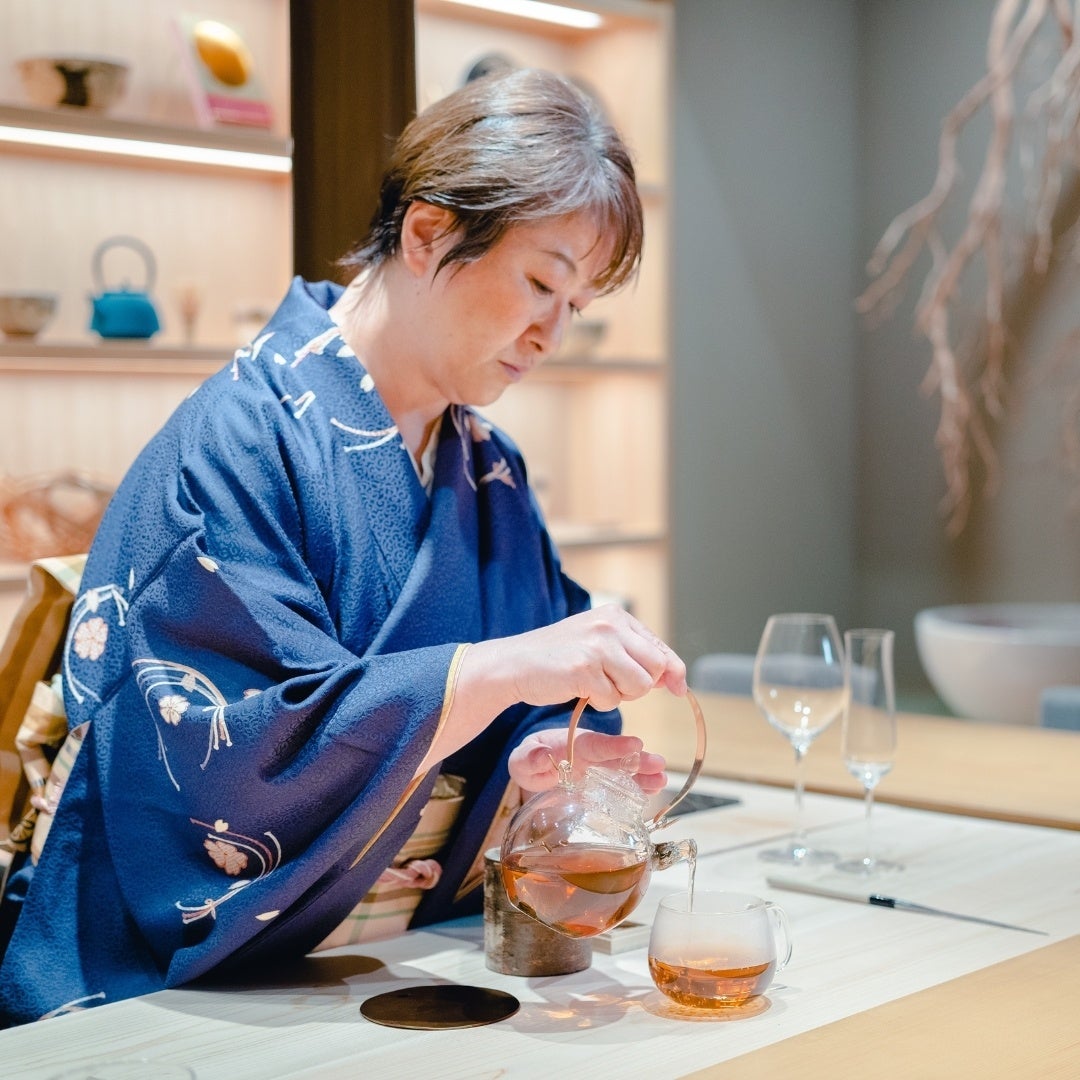 カウンター内の女将がていねいにお茶を淹れ、お客様をおもてなしします。