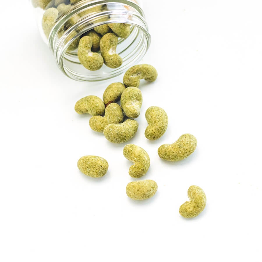 青のりの衣を纏ったカリッとした食感のカシューナッツ。