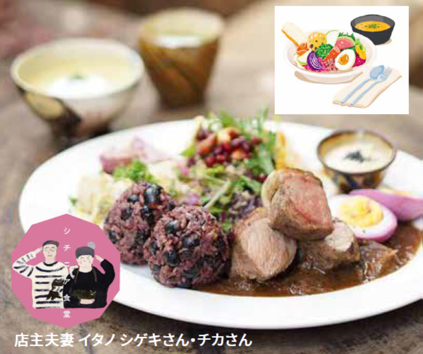 日々のごはんをちょっと華やかに。野菜が主役のローカルダイニング。清荒神の参道、元植木店をリノベーションした建物でイタノ夫婦が営む食堂。栽培期間中農薬不使用の野菜などを扱う八百屋「オーガニッククロッシング」の旬の野菜を使い、華やかなルックスでありながら優しい味わいの料理が楽しめます。