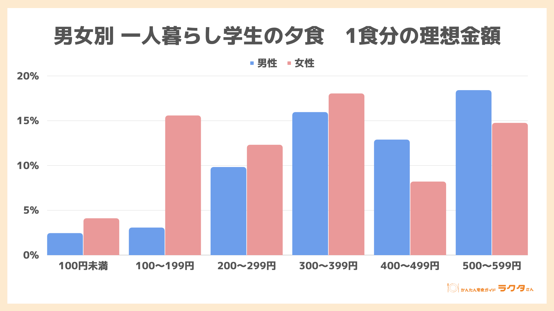 ■夕食の理想金額は「300円台」「500円台」が最多 女性の方が食費を抑えたい