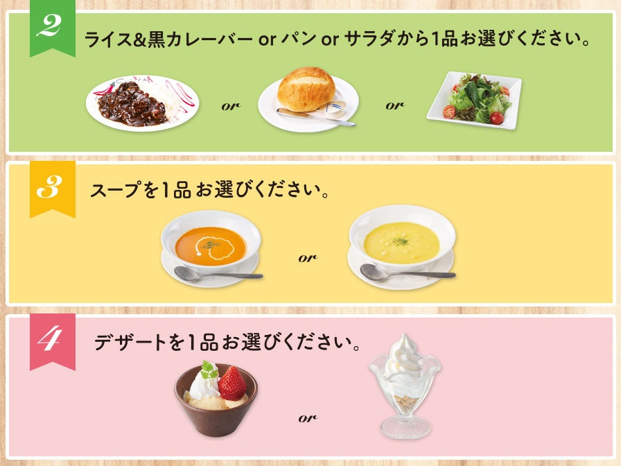 メインディッシュ、サイドメニュー、スープ、デザート、それぞれ好きなものを選べる『春のセレクトセット』を期間限定で販売いたします。