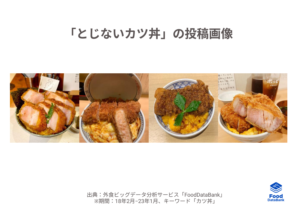 そこで、「FoodDataBank」から「カツ丼×1,000円以上」の投稿レビューを見てみると「とじないカツ丼」の投稿が多く見受けられました。