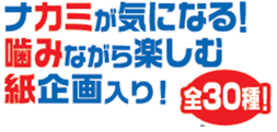 ④ナカミが気になる!噛みながら楽しむ、紙(かみ)企画を実施し、新たに10種類を追加(全30種類)。