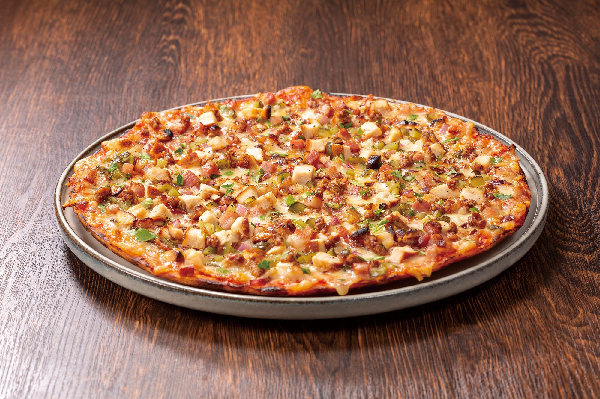 ベーコン、チキン、ナッツのスモークピザ 税込2,480円