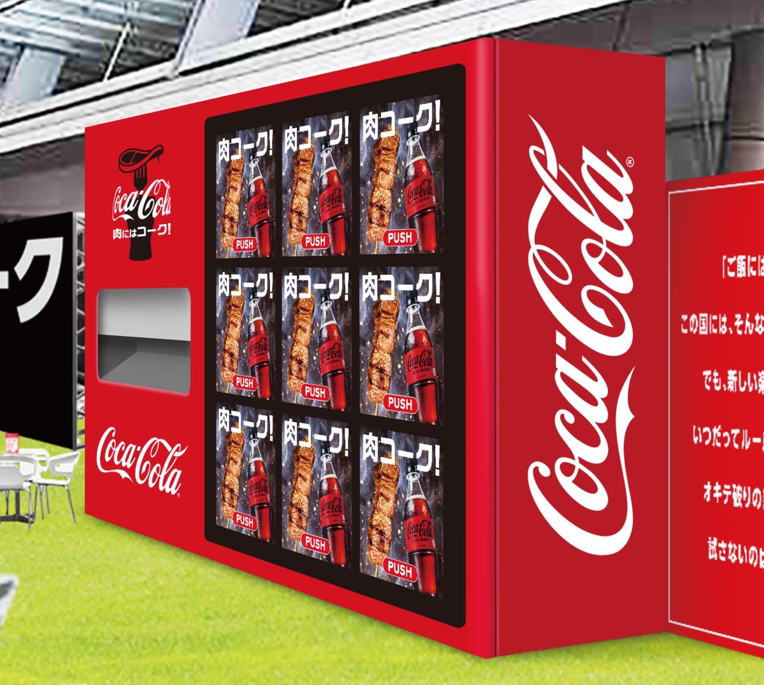 ■スペシャル自動販売機から「コカ・コーラ」とステーキ串が出てくる!「#肉にはコーク!オキテ破りの大試食会」