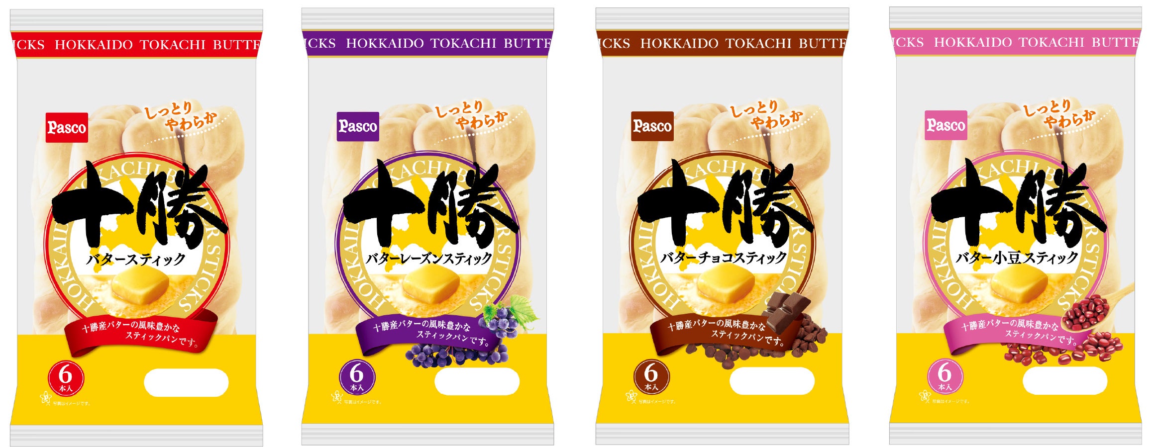 また、新商品の発売にあわせ、同シリーズの4アイテム「十勝バタースティック6本入」、「十勝バターレーズンスティック6本入」、「十勝バターチョコスティック6本入」、「十勝バター小豆スティック6本入」 をリニューアル発売します。