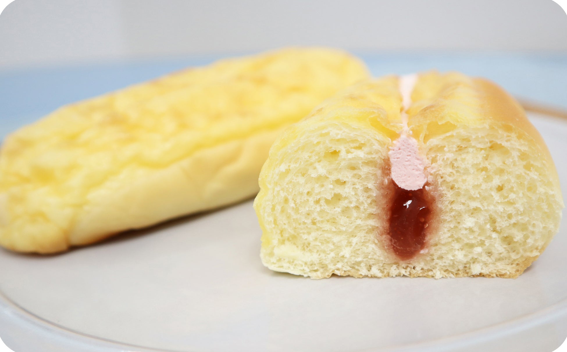 商品サイズの見直しを行うとともに、生地の配合を見直し、パン生地はふんわり、やわらかく、シュー生地はよりシュークリームの食感に近づけました。