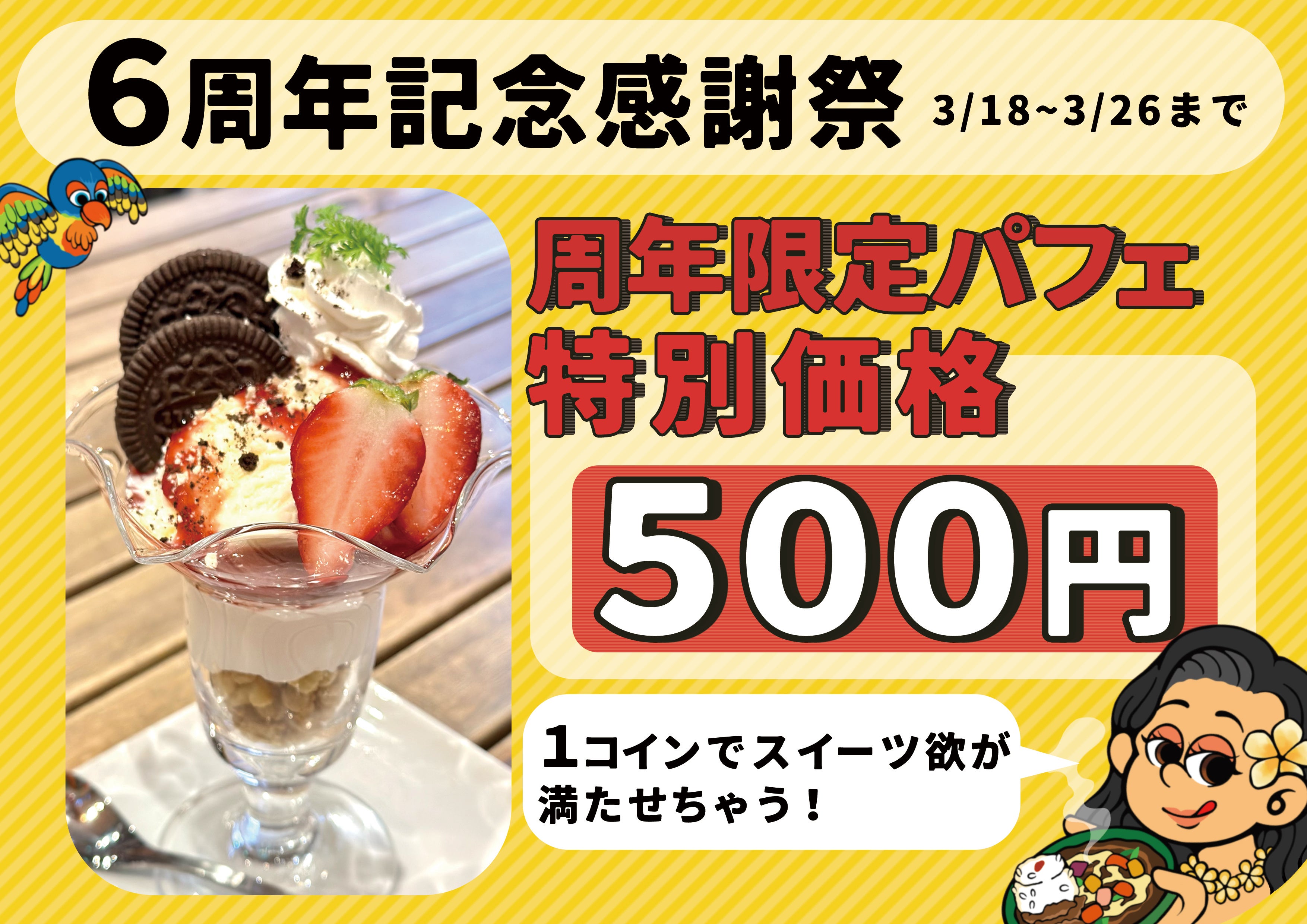 1コインでスイーツ欲が満たせちゃう!周年限定パフェも登場!