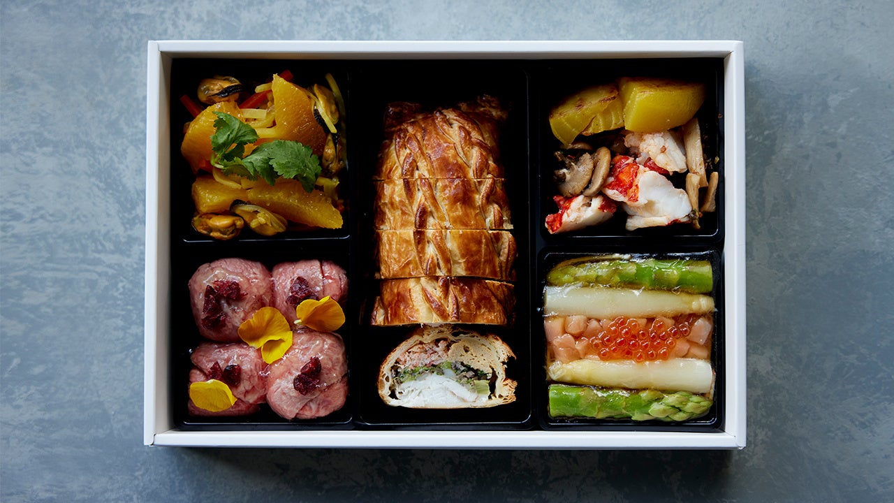 DEAN & DELUCAのシェフと、フレンチビストロ『Ata(アタ)』の掛川哲司シェフがタッグ。旬の魚介と野菜を中心に、『Ata』のスペシャリテを詰め込んだ季節のオードブルをご用意しました。「今回、手土産にも喜ばれる華やかさを意識して、僕のスペシャリテである”蟹肉のパイ焼き”をメインに、旨みのあるシーフード料理などを提案しました。桜色の泡や、色の濃い白ワイン、オレンジワインなどが合うと思います(掛川シェフ)」。