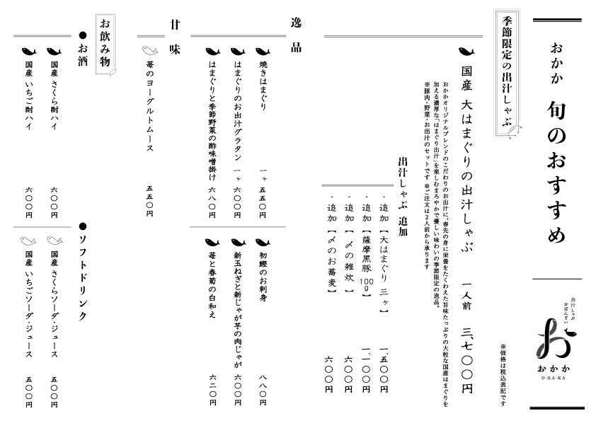 価 格: 一人前 3,700円(税込)