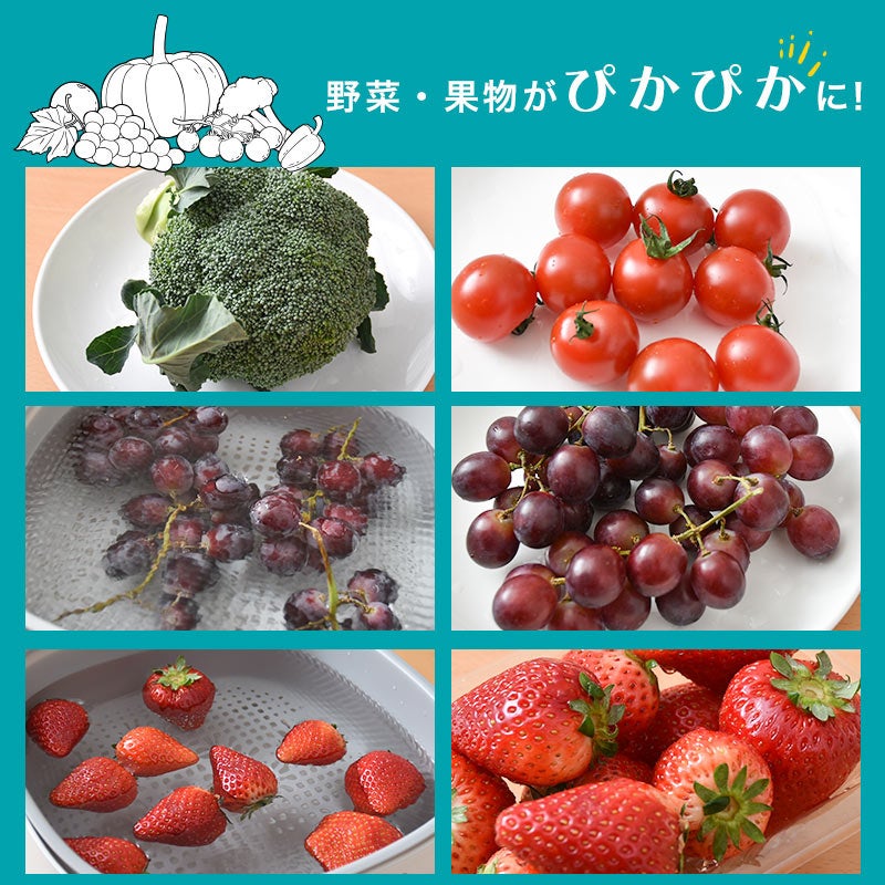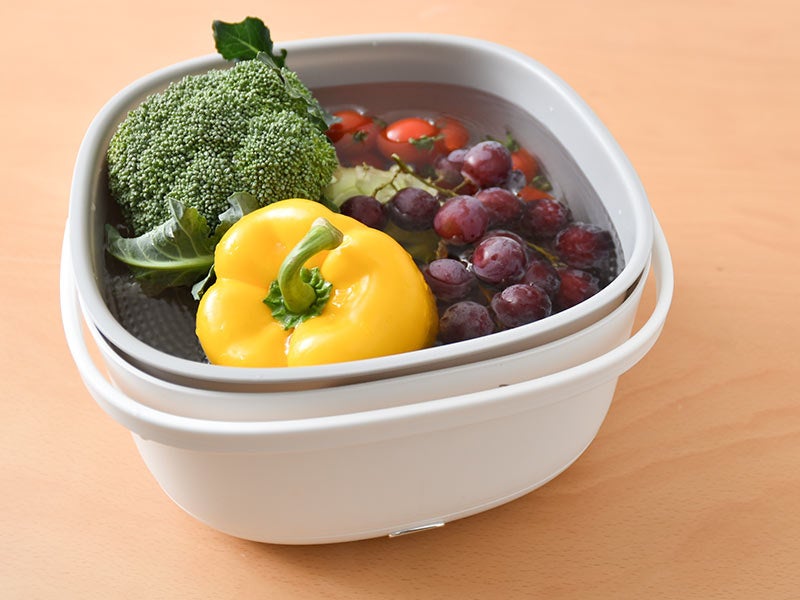 野菜や果物の汚れが気になる。汚れを落とすのが面倒。洗う際の水道代が気になる。そんな方におすすめの「ラクベジウォッシャー」です。