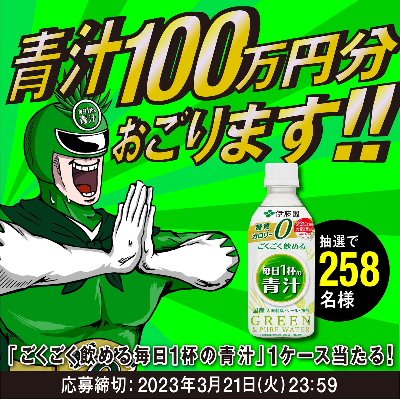 株式会社伊藤園(社長:本庄大介 本社:東京都渋谷区)は、ブランドキャラクター「青汁マン」の失態をお詫びするプレゼント企画「青汁100万円分おごらせてください!!」Twitterキャンペーンを、3月17日(金)より「青汁マン公式Twitter」アカウントにて実施します。