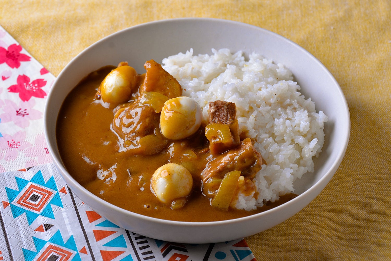 うずらの卵でイースター感を演出したカレーです。