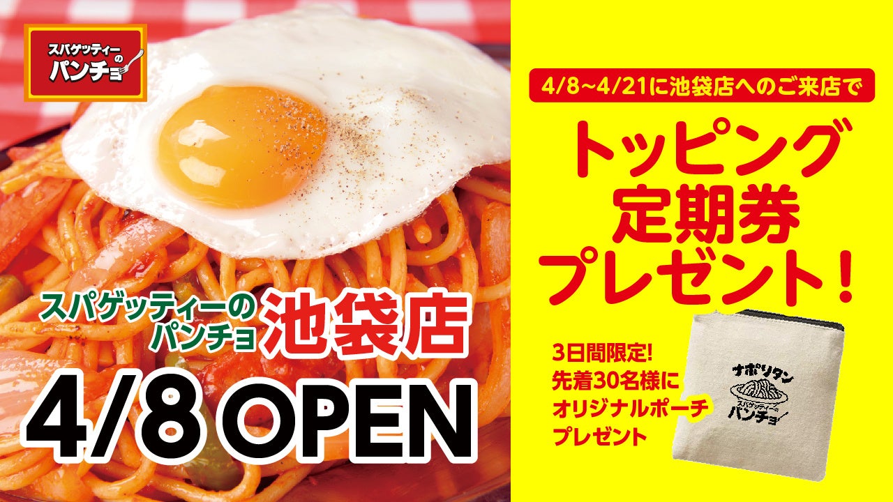 株式会社パンチョ(東京都武蔵野市:CEO 野尻圭介)は、2023年4月8日(土)に「スパゲッティーのパンチョ 池袋店」をオープンいたします。