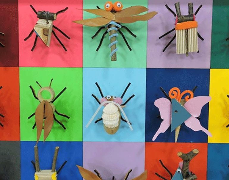 木製のベースキットに好きな素材を組み合わせて、自分だけの新種の昆虫がつくれる親子で参加可能なワークショップです。拾った葉っぱや木はもちろん、家に眠っている端材やプラスチックごみを使ってオリジナルの昆虫をつくれます。つくった昆虫に名前をつけたり、昆虫どうしで戦ったり、新しい遊びも広がります。