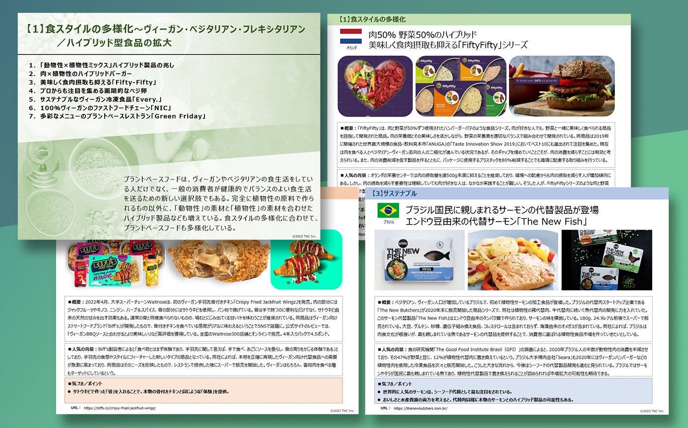 プラントベースフードへの参入を検討されている企業や、プラントベースの商品企画・新商品開発をご担当されている方に向けた内容になっています。今後はスナッキングや飲料をテーマにした特別レポートも予定しております。