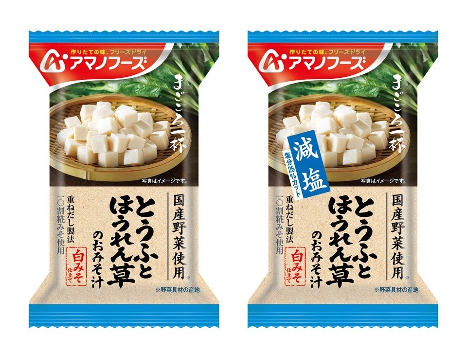 アサヒグループ食品株式会社(本社 東京、社長 川原浩)は、「アマノフーズ」ブランドの『まごころ一杯 とうふとほうれん草のおみそ汁』『まごころ一杯 減塩とうふとほうれん草のおみそ汁』を3月30日から通信販売で発売します。