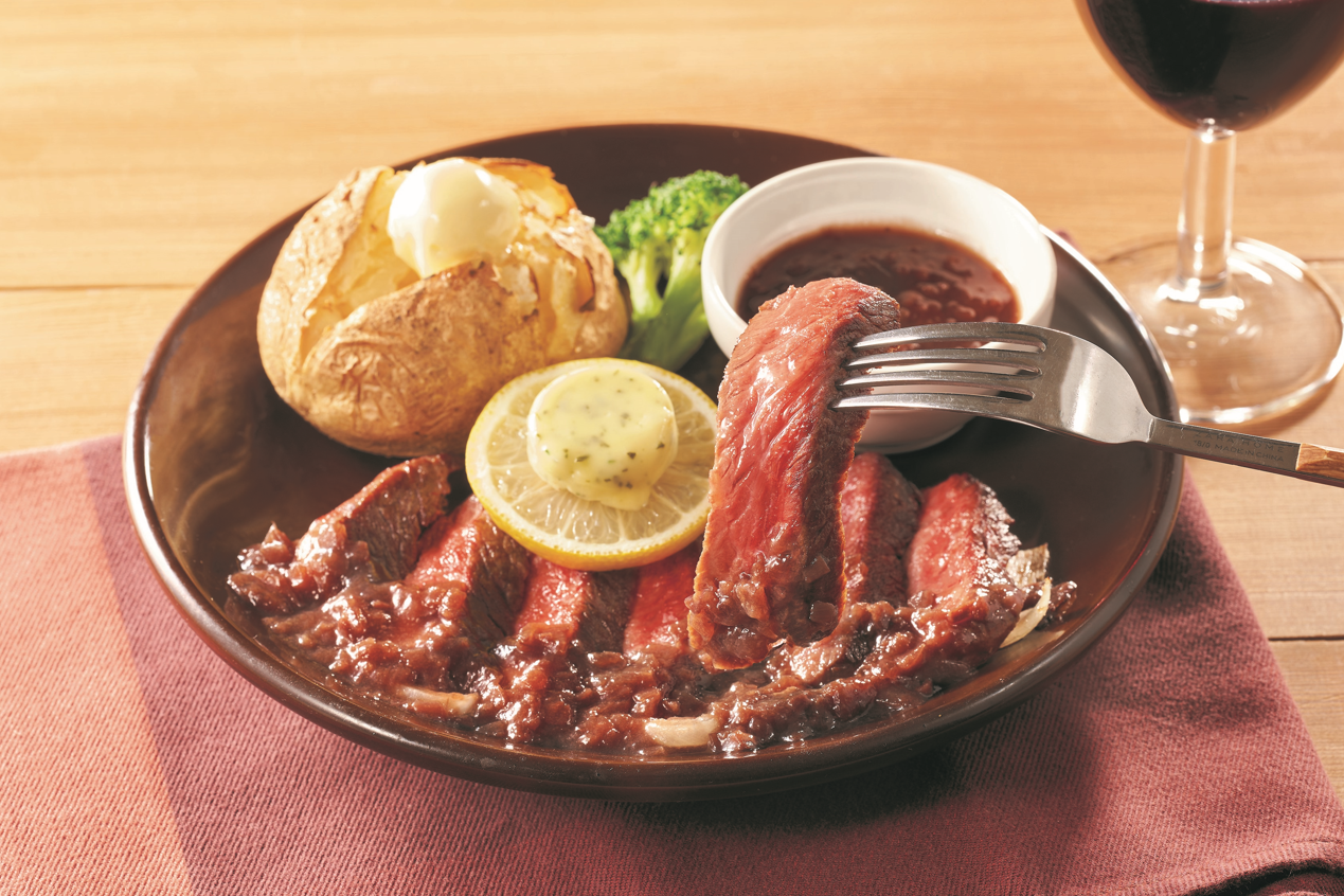 余熱で仕上げることで旨味をぎゅっと閉じ込めています。脂身が少なくヘルシーな赤身のお肉です。