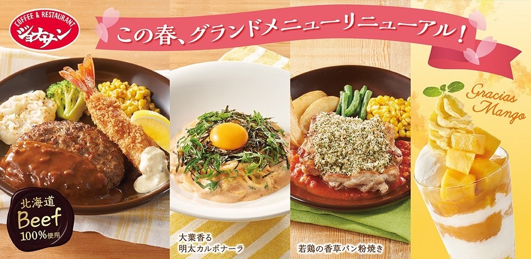 株式会社すかいらーくレストランツ(本社・東京都武蔵野市、代表取締役社長 中島 尚志)が運営する「ジョナサン」では、2023年3月16日(木)より、『北海道産牛』100%ハンバーグなど、春の新メニューの販売を開始いたしました。