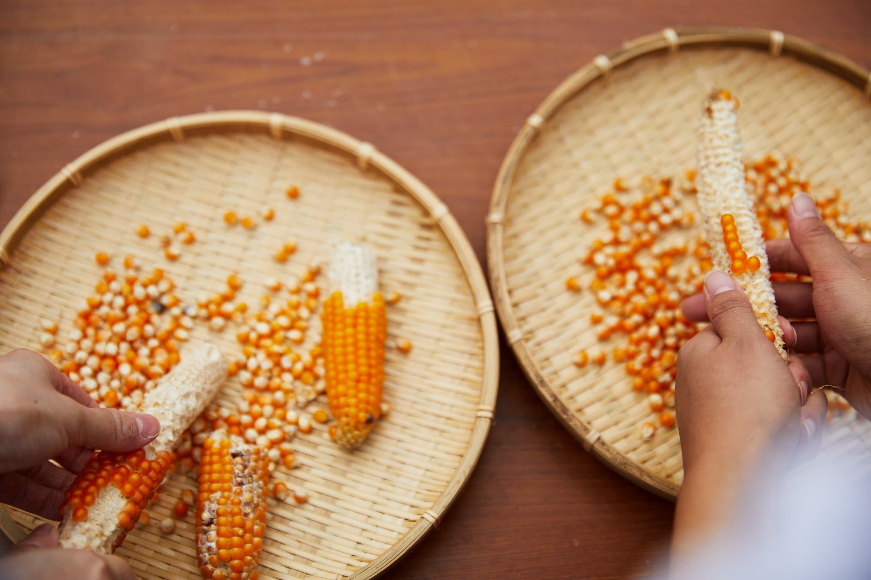 昨年の収穫では農薬・除草剤を使用せず生育したポップコーンの実は、虫食いのものが多く「丸ごと1本」売りとして商品化できなかったものが多数ありました。