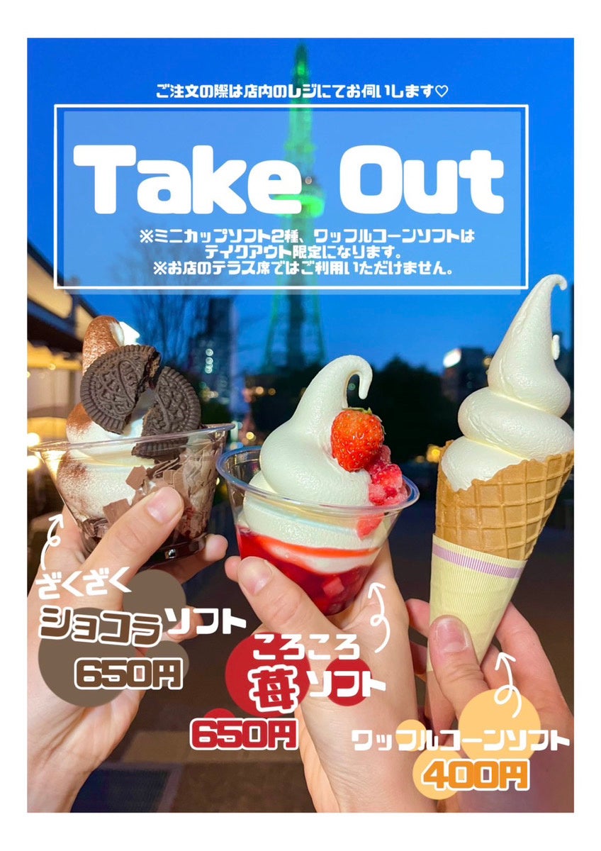 ELOISE’s Cafe名古屋久屋大通公園店(運営:株式会社RAVIPA 本社:東京都豊島区)では、3種のソフトクリームの販売をテイクアウトと店内にて販売しております!お花見のお供にもいかがでしょうか?