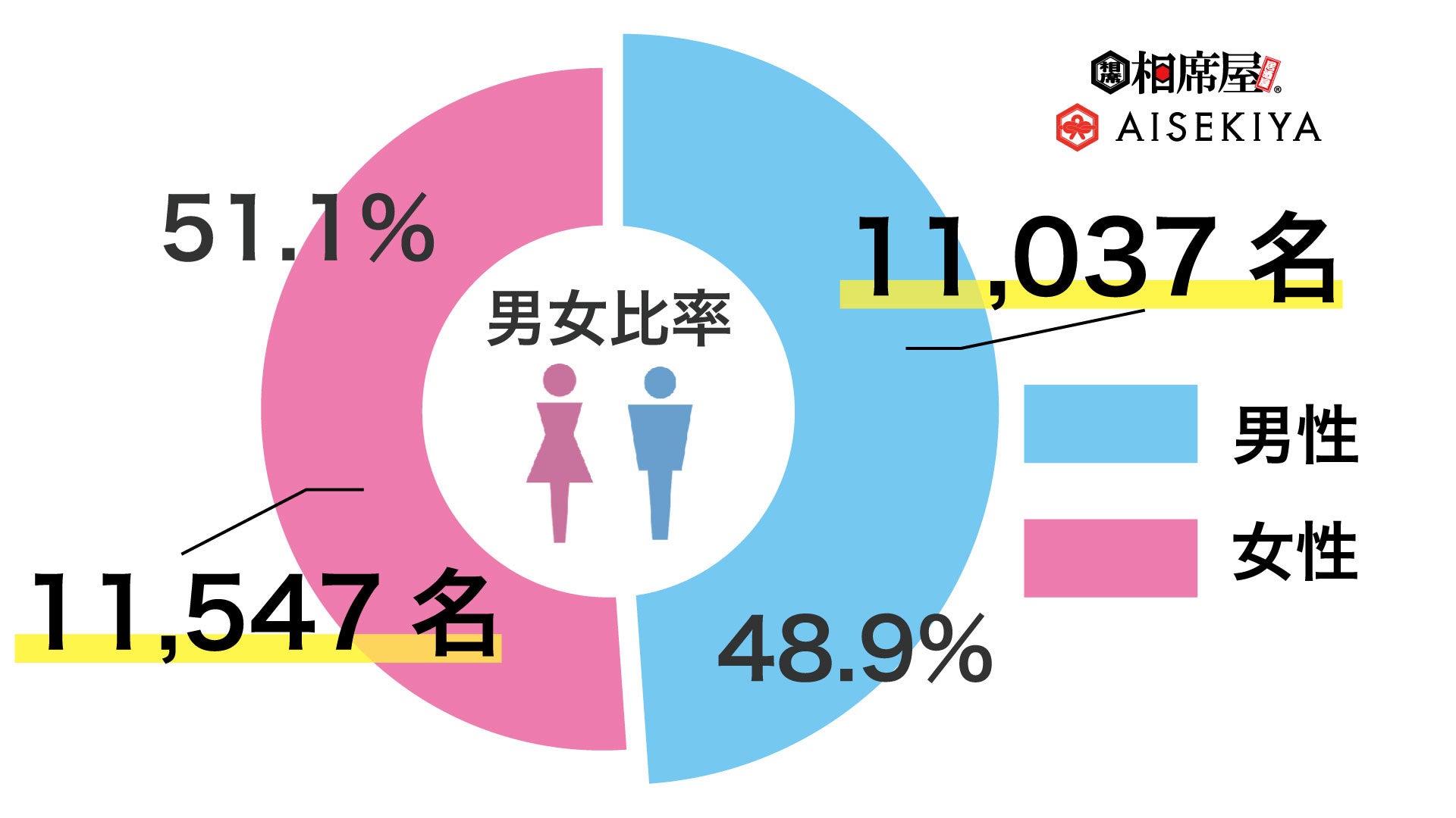 相席屋9周年イベントが始まってから2023年3月17日時点で相席屋に男性来店数は5,641人、女性来店数は6,624人となっています。