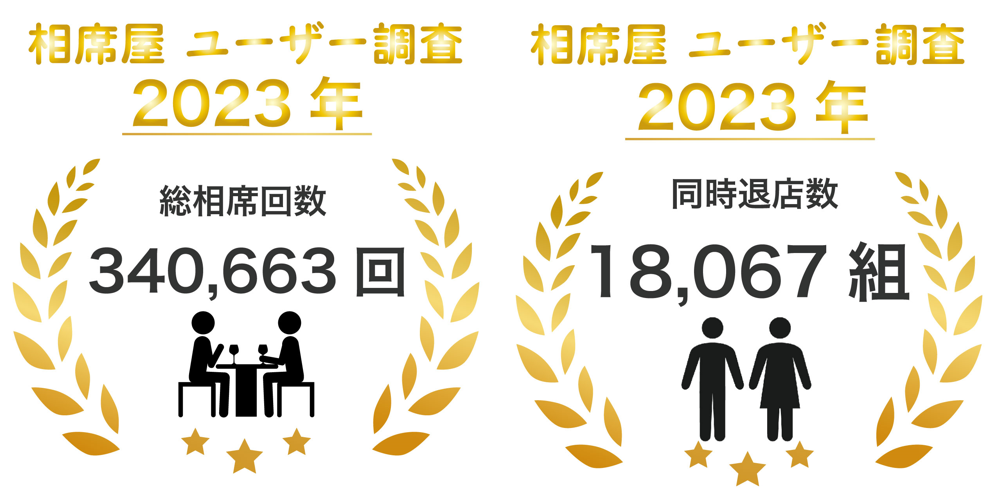 2023年2月の相席屋は、総相席回数340,663回、総同時退店数18,067組を突破いたしました。(2021年度〜2023年2月までの合計数)