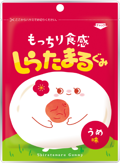 「しらたまるぐみ」はもっちりとした噛み応えが特徴のグミです。和スイーツの定番”白玉“をグミで再現するために、白玉の主原料である白玉粉を使用してグミを開発しました。