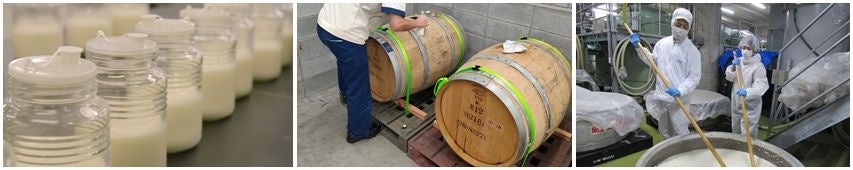 また、理想の余韻に近づけるために、できあがったお酒の一部を厳選したワイン樽に貯蔵しました。2種類のお酒をそれぞれ赤ワイン樽と白ワイン樽に貯蔵することで、深い余韻を持ったお酒が完成しました。