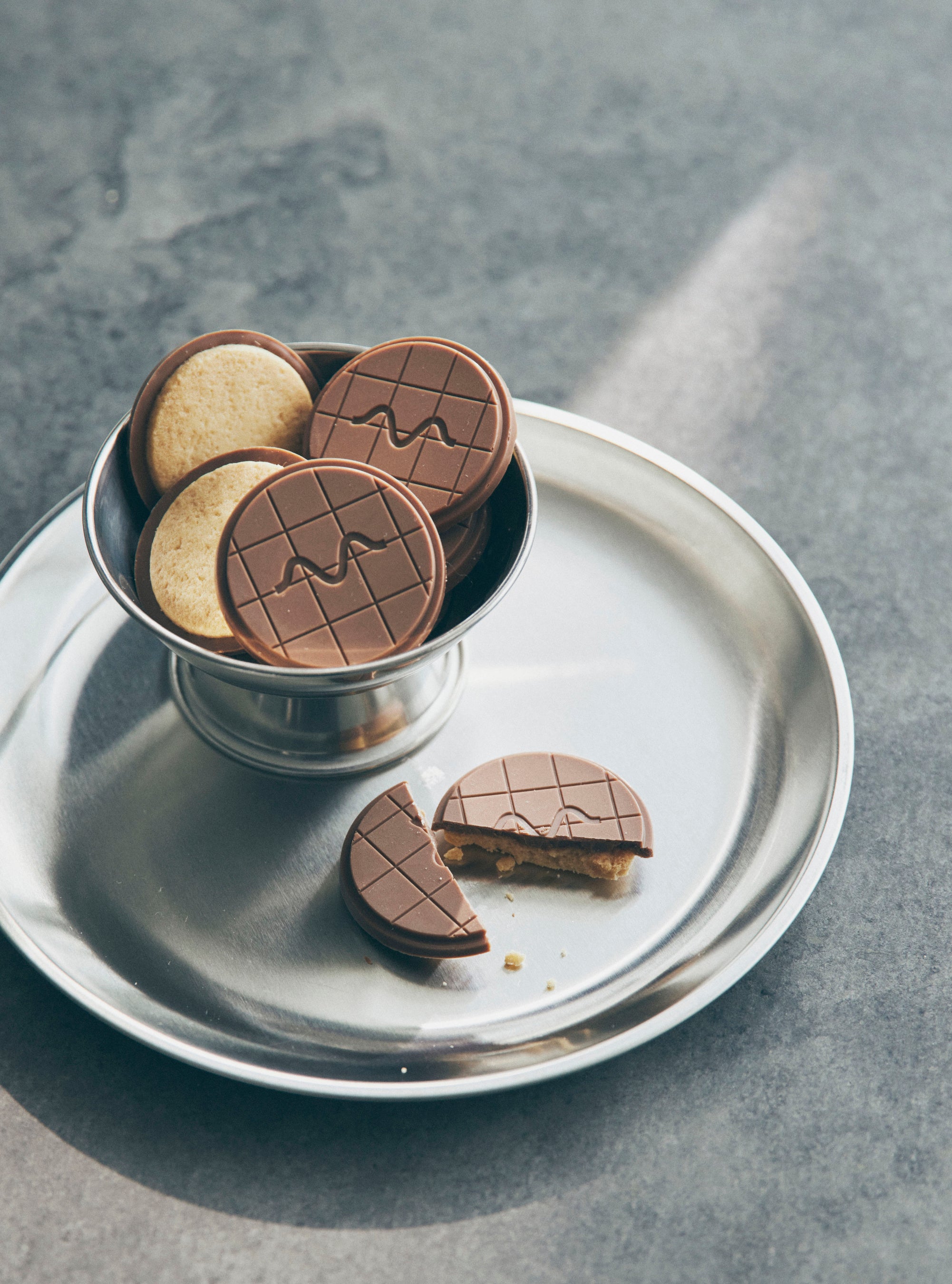 Murir(ミュリル)本来のおいしさをそのままに、“飽きのこない” チョコレートサブレ。香ばしく軽快な食感のサブレにゲランドの塩をほんのりときかせることで、より一層際立つミルクチョコレートの輪郭。Murir(ミュリル)のやさしさをサブレが引き立てる、こだわりのおいしさ。