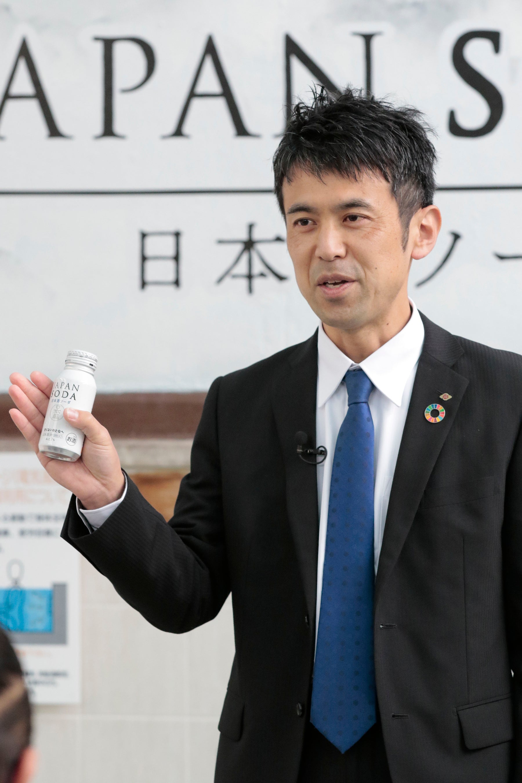 まずは、当社執行役員 営業本部長の松本栄一郎と、商品開発室課長・髙野将彰よりご挨拶差し上げました。松本からは「日本盛は、地域に貢献できる事業をしようと青年実業家が発足した株式会社です。当時は今で言うベンチャー企業でして、300年、400年と長い歴史のある酒蔵が多い中、弊社は創業134年目となります。創業当時のチャレンジ精神を今も脈々と受け継いでおり、業界初の商品も多数生み出しております。テレビコマーシャルソングの放映や、化粧品業界への参入も弊社が業界初となっています。そして、本日発表の『JAPAN SODA』、この商品が日本酒業界の活性化に寄与すると確信しております」と、会社説明とともに新商品への意気込みを語りました。