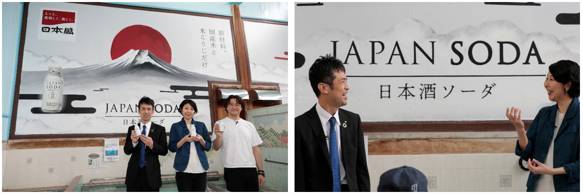 続いて、「日常の中のリフレッシュ」をテーマにトークセッションを実施。銭湯も日本酒も日常の中にありながら、簡単に心身をリフレッシュさせてくれるものです。これについて田中さんは、「本商品を飲ませていただいたときに、香りの豊かさに感動しました。銭湯も、懐かしい香りが楽しめますよね。そういった香りでの癒しももちろんですし、私のリフレッシュ方法が、正に銭湯行ったり美味しいものを食べることなので。私は一人でポツポツと仕事をするタイプなのですが、『今日家に帰ったらお酒ある!』というのが嬉しいんですよね。また、銭湯によってはクラフトサイダーが売られていたりするんですよ。銭湯に行くのも小旅行気分というか、そういう、日常だけど非日常みたいな時間はリフレッシュになりますね」。ヨッピーさんは「僕も田中さんとまったく同じです。お風呂とお酒が癒しですね。スマホがあるのは便利だけど、そのせいで24時間仕事から離れられず、オンオフの切り替えが下手になっている。そういうときに、お風呂に入り、お酒を飲むと、リラックスできますよね。しかも、お風呂上がりはなぜか炭酸飲料を飲みたくなるんです。だからこれからはお風呂上りに『JAPAN SODA』を飲もうかな」と、嬉しそうに語りました。