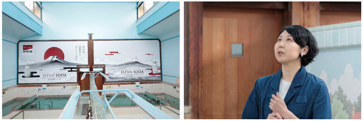 今回のイベントのメイン会場である第二寿湯浴室の壁には、「日本盛 JAPAN SODA」のキービジュアルが、銭湯ペンキ絵となって登場。このペンキ絵は、しばらくの間、第二寿湯でご覧いただけます。