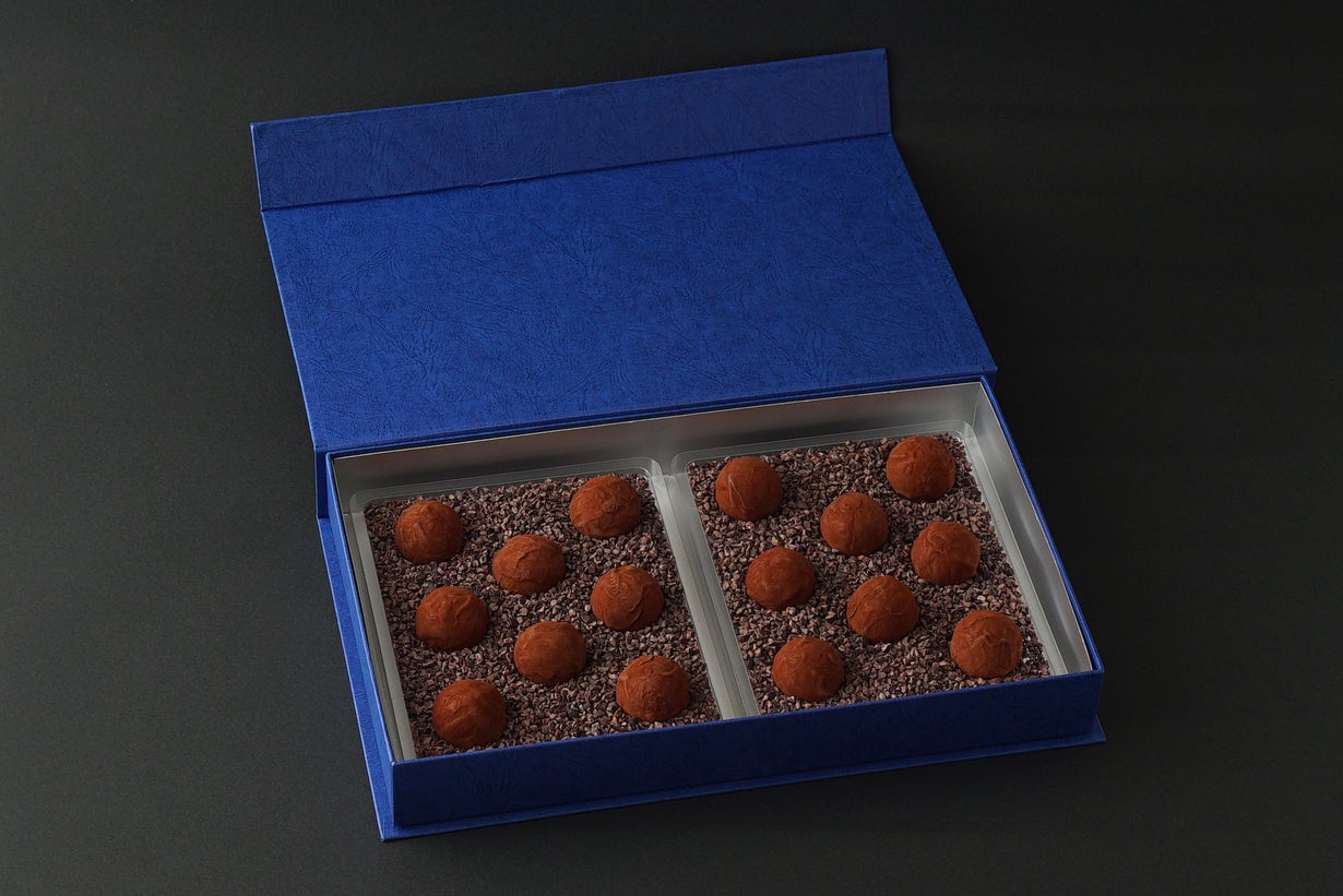 このトリュフショコラは、大切な方へのプレゼントとしてお選びいただくことが多く、顔となるパッケージにもこだわりを施しております。今回販売する新パッケージは、ロイヤルブルーをベースに、「ラルケスト」のロゴを箔押しした高級感のあるパッケージ。性別・年齢問わず、どなたでも喜んでいただけるようなデザインを心掛けました。マグネットの開閉式になっており、お召し上がり後も小物入れとしてお使いいただけます。また、箱を開けた時のサプライズのエッセンスとしてカカオニブを敷き詰めており、“まるで本物のトリュフが土の中から顔を出した”ような演出を施しております。 このカカオニブは、ホットミルクに混ぜあわせることで、‟香り高いホットカカオ”としてもお楽しみいただけます。
