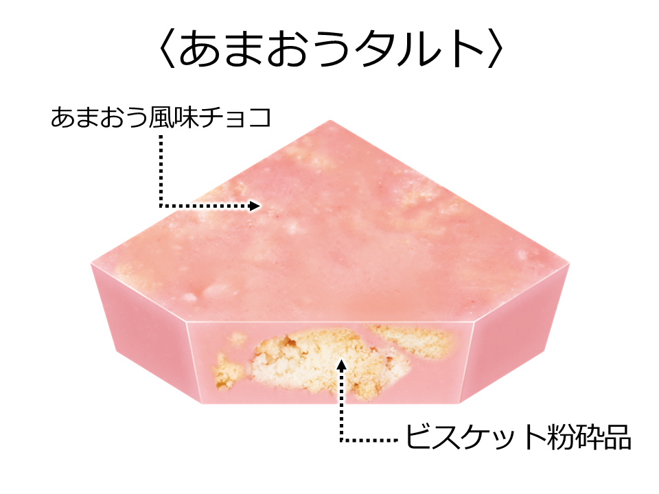 粉砕したビスケットとあまおう風味のチョコを合わせました。