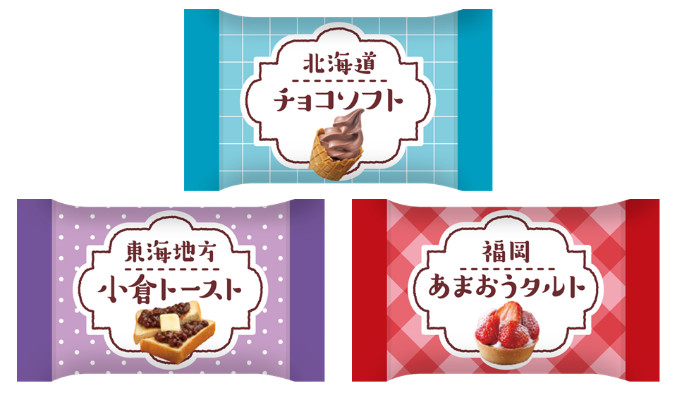 今回は、各企業の北海道・東海地方・福岡の各地域の代表的なスイーツを再現した限定商品を発売します。