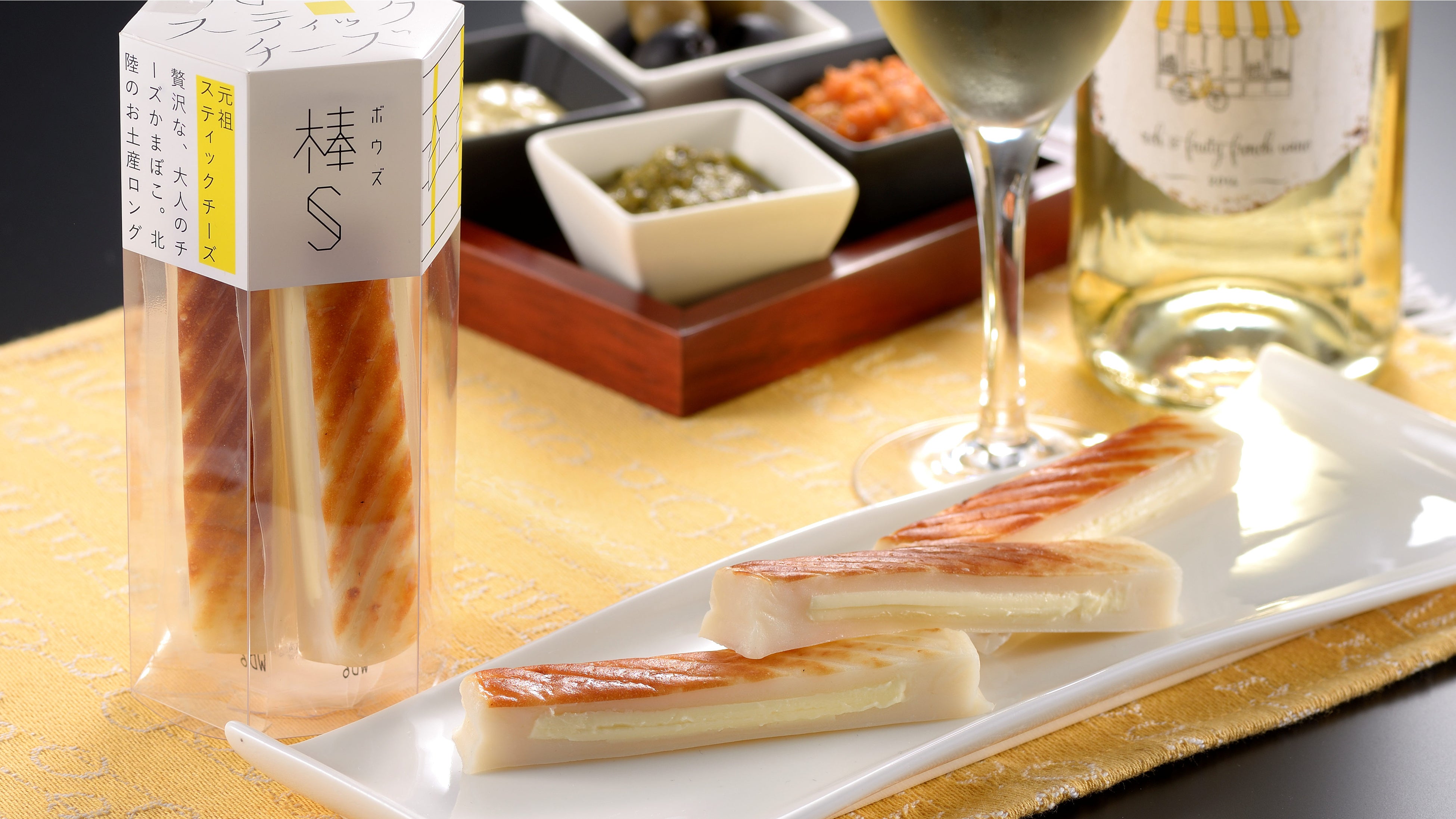 「棒S」は河内屋が開発したスティック蒲鉾シリーズです。お酒と一緒に手軽に食べられるように、スティック状に成型し個包装しております。お土産やギフト商品として高い評価を得ております。今回ご用意したのは、女性に嬉しいヘルシーな”焼き”タイプの「元祖スティックチーズ」「富山湾しろえび」「粗びき黒こしょう」の3種類。