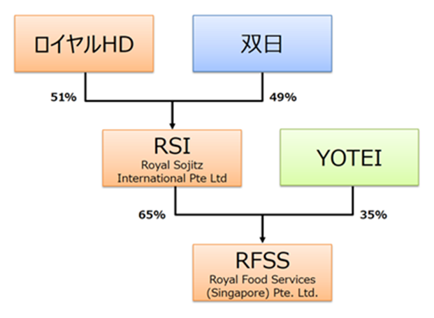 ロイヤルホールディングス株式会社(本社:福岡県福岡市、代表取締役社長:阿部 正孝、以下「ロイヤルHD」)と双日株式会社(本社:東京都千代田区、代表取締役社長:藤本 昌義、以下「双日」)は、2021年8月31日にシンガポールに設立したRoyal Sojitz International Pte. Ltd.(本社:シンガポール、Managing Director:藤岡 聡、以下「RSI」)と、シンガポールで「天丼てんや」を運営するTENYA SINGAPORE PTE. LTD.の100%親会社であるYOTEI PTE. LTD.(本社:シンガポール、Managing Director:David Ban Song Long、以下「YOTEI」)との間で合弁契約を2023年3月20日付で締結しましたのでお知らせします。