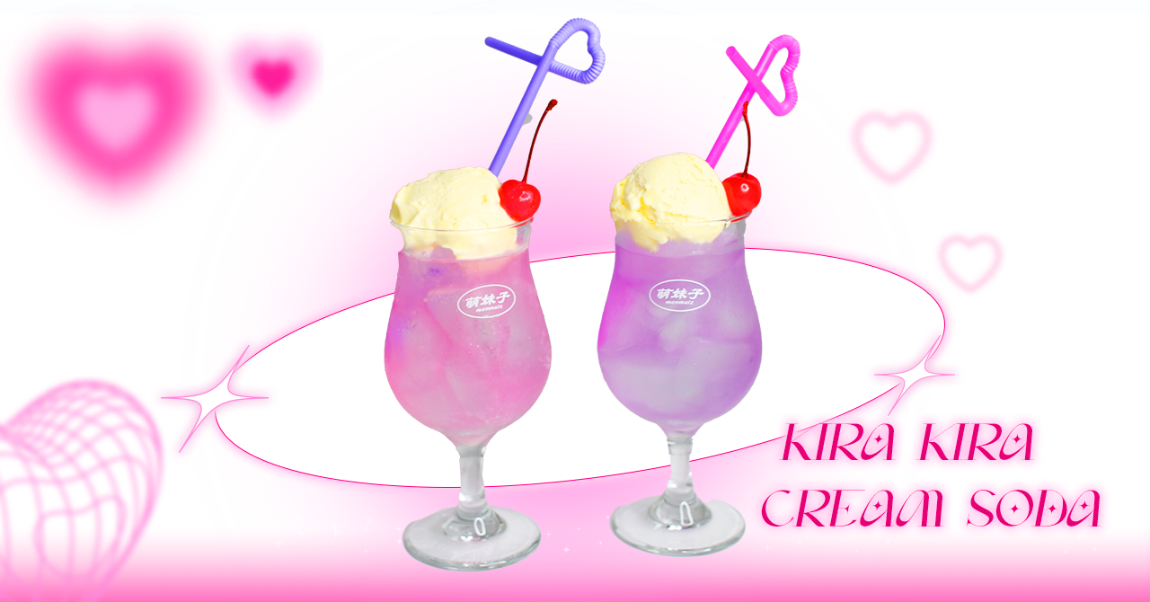 萌妹子-menmeiz-のメインカラーであるピンクとパープルを使ったクリームソーダです。¥750