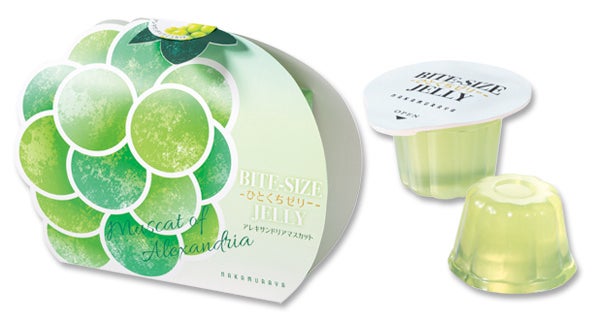 ■商品説明:マスカット・オブ・アレキサンドリアを使ったひとくちサイズのゼリー。果汁感あるやわらかな食感にすることで、本物の果実のようなジューシーさに仕上げました。さわやかな酸味の上品なおいしさが味わえます。