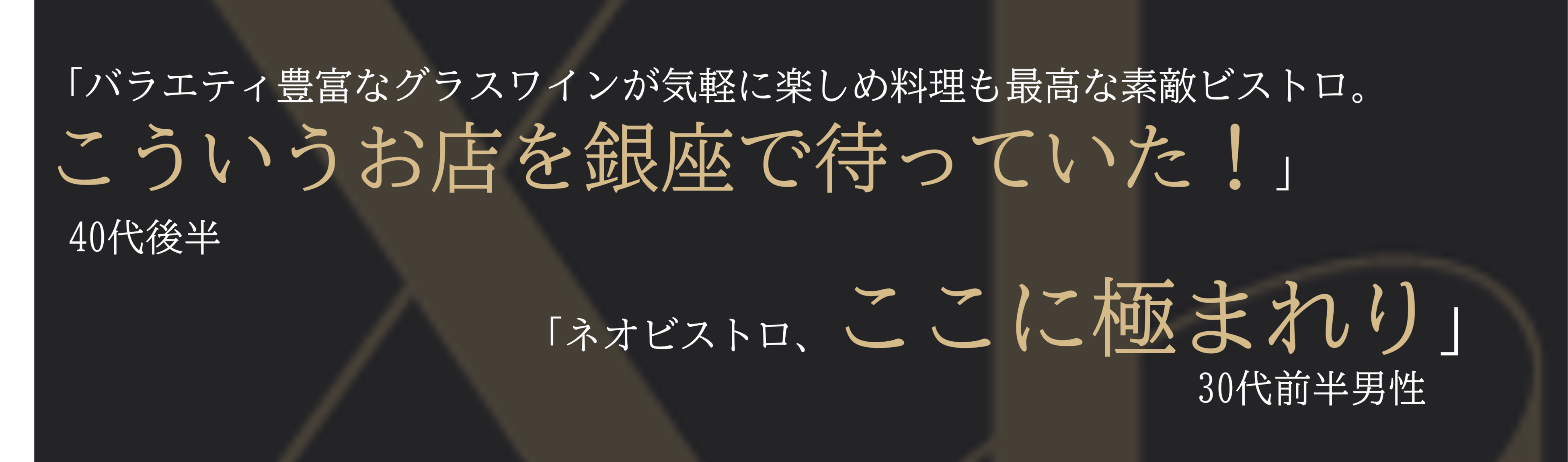 株式会社MIMO(本社:東京都港区、代表取締役:鈴木康裕)が運営する銀座のネオビストロ「XL Neo Bistro & Wine Bar(エックスエル ネオビストロ&ワインバー)」が、2023年3月20日(月)からMakuakeにて会員権・お食事券の応援購入プロジェクトを開始いたします。2023年1月にグランドオープン。早々に食べログマガジンやYahoo!ニュースにも掲載された話題のネオビストロをお得に味わえるチケットと特別会員権をMakuake上で限定販売いたしますので是非この機会にお求めください。