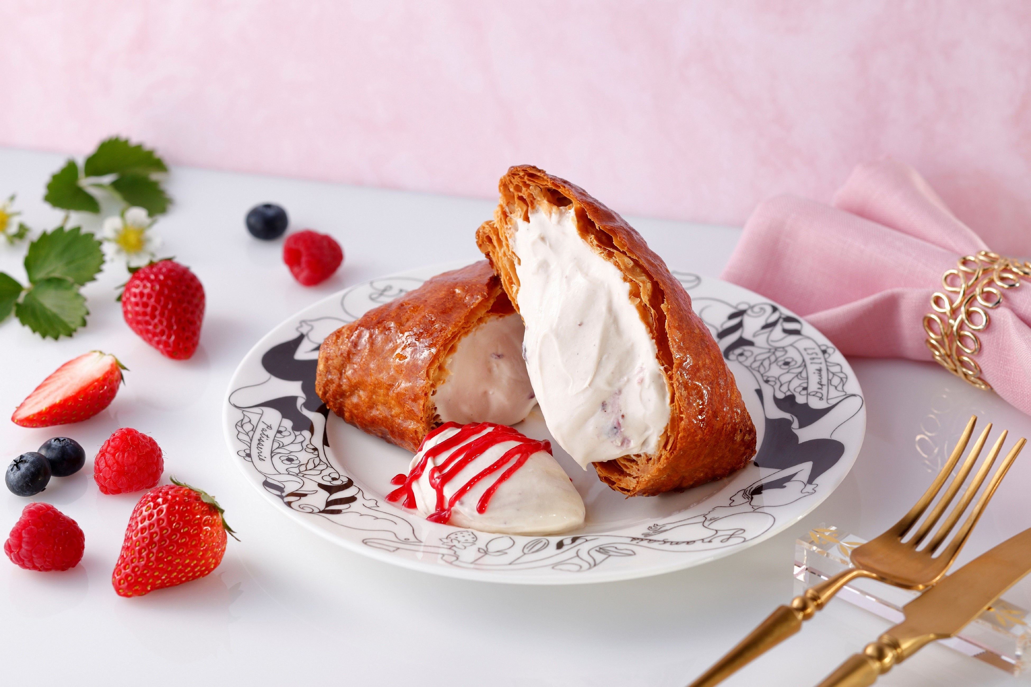 幾重にも重なった薄い生地が、柔らかい空気の層をつくりクリームをやさしく包み込みます。