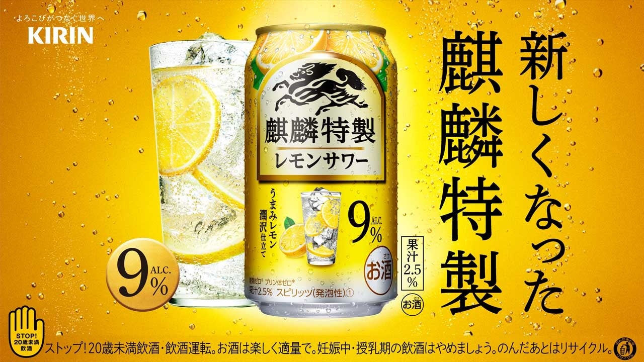・「麒麟特製 レモンサワー ALC.7%」では新たに、複数のレモン漬け込み酒をブレンドすることで、豊かなレモンとお酒の飲みごたえが感じられる味わいへと進化しました。