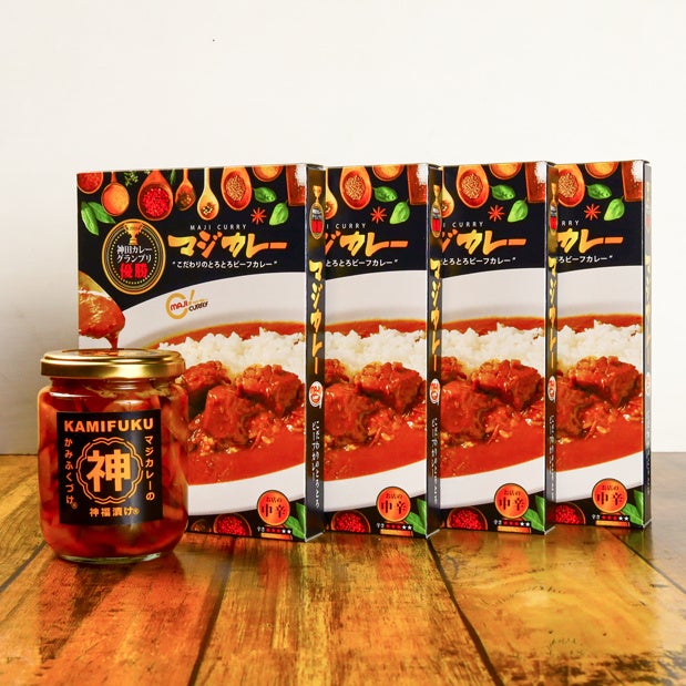 多くの人に食べていただき、マジカレーレトルトの美味さを知っていただきたい、その想いから昨年末オンラインショップでマジカレー4箱購入でマジカレーオリジナル福神漬け『神福漬け』1瓶プレゼントのキャンペーンを行ったところ、想像できないほどの多くのご注文をいただき、短期間での販売終了となりました。