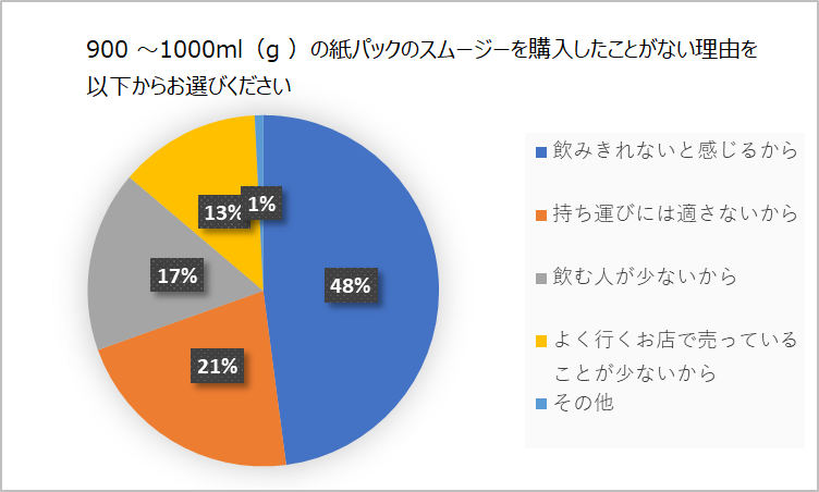 ②900 ~1000ml(g )の紙パックのスムージーを購入したことがない理由を以下からお選びください。