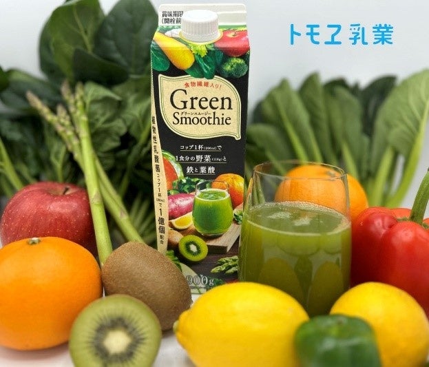 トモヱ乳業株式会社(茨城県古河市 代表取締役社長:中田俊之)は、発売から約5年累計販売400万本のロングセラー商品「グリーンスムージー 900g」を2023年3月21日よりリニューアル発売いたします。同社代表取締役社長 中田俊之は現役循環器内科医であり、ドクターとしての目線で本製品を開発しました。コップ1杯(200ml)で1食分の野菜と植物性乳酸菌が1億個摂取出来ることはもちろんのこと、旧製品と比較して1食分の鉄と葉酸をプラス、りんご・オレンジ・キウイフルーツ・レモンの果汁を使用して家族全員で飲める、幅広い年代のお客様にお楽しみいただけるよう、さっぱり飲みやすい味わいに仕上げました。不足しがちな栄養成分の補給の一助に、ぜひお召し上がり下さい。