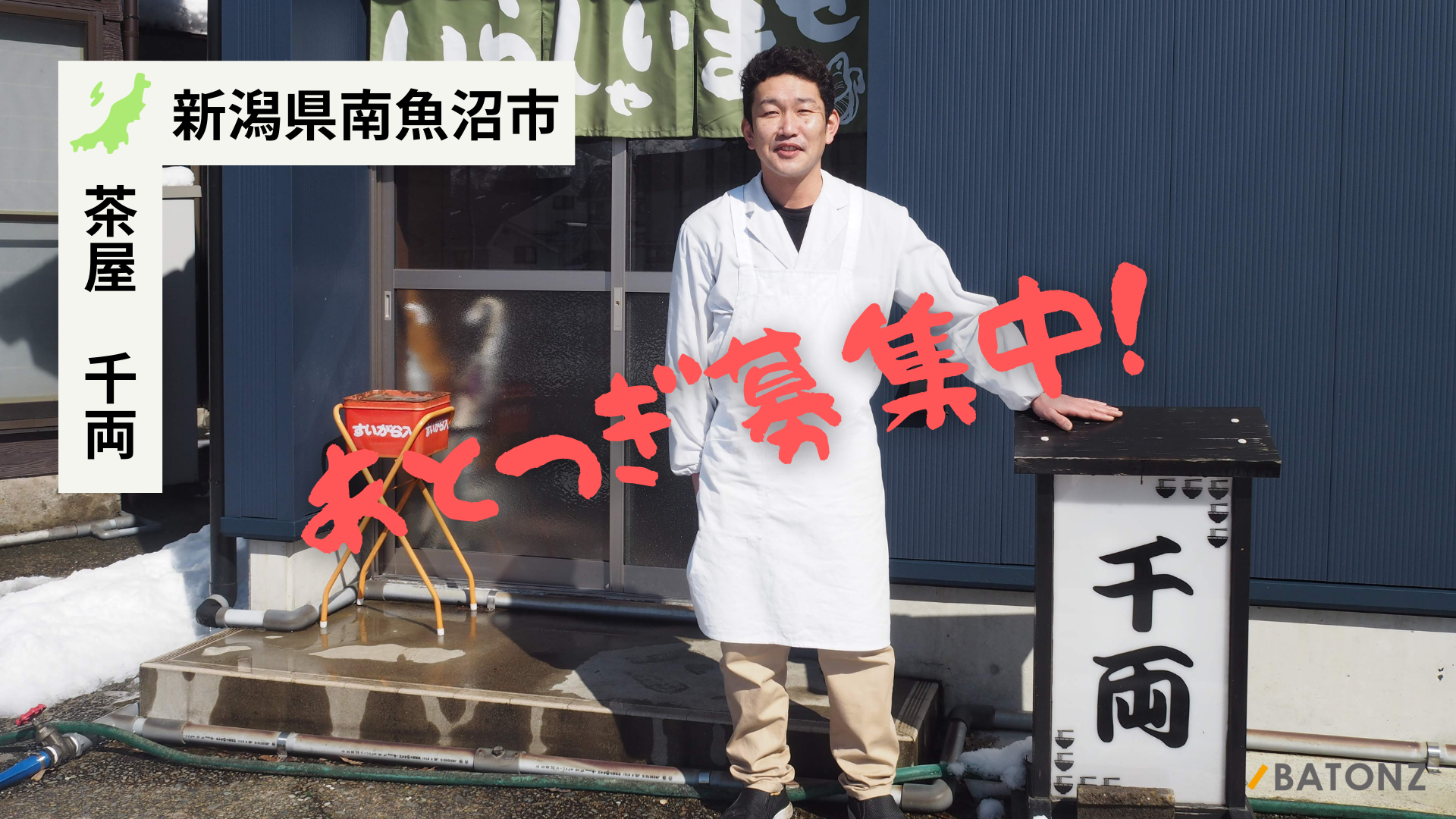 M&A総合支援プラットフォーム「BATONZ(バトンズ)」を運営する株式会社バトンズ(本社:東京都中央区、代表取締役:神瀬 悠一、以下バトンズ)は、新潟県南魚沼市で一流料理人が経営するラーメン居酒屋の「茶屋 千両」があとつぎ公募を開始することをお知らせします。