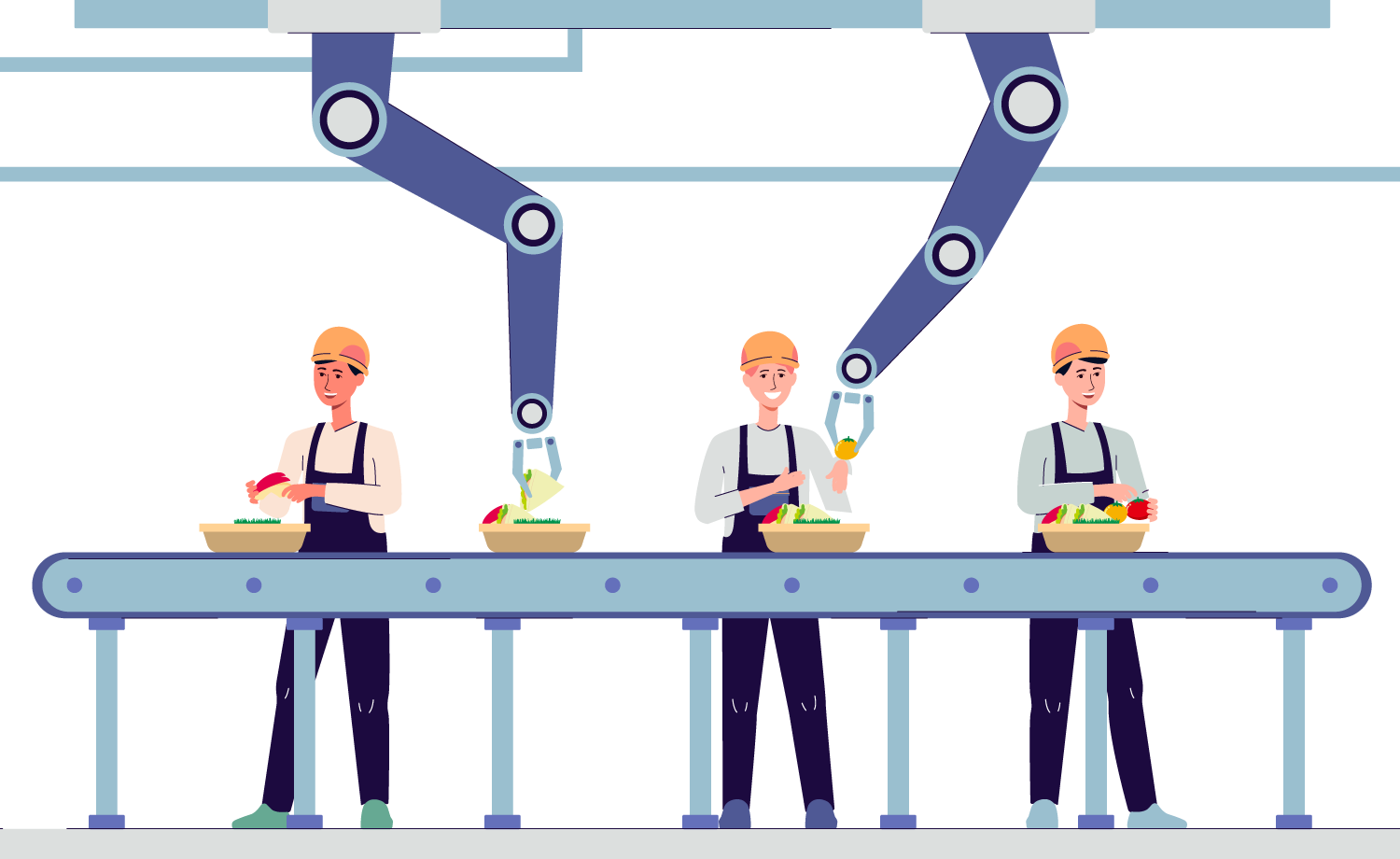 食品製造のうち特に惣菜製造分野では、対象物が不定形であること、多品種小ロットであることなどから、ロボット自体の導入に対して技術的・経済的ハードルが高いという課題があります。加えて、ユーザー側の既存の業務プロセスや施設環境などを見直し、ロボットを導入しやすいロボフレ環境へと変革することが欠かせません。