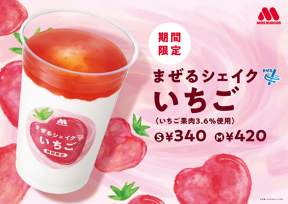 モスバーガーを展開する株式会社モスフードサービス(代表取締役社長:中村 栄輔、本社:東京都品川区)では、2023年3月24日(金)~ 5月下旬まで、全国のモスバーガー店舗(一部店舗除く)にて、「まぜるシェイク いちご <いちご果肉3.6%使用>」を期間限定で販売します。