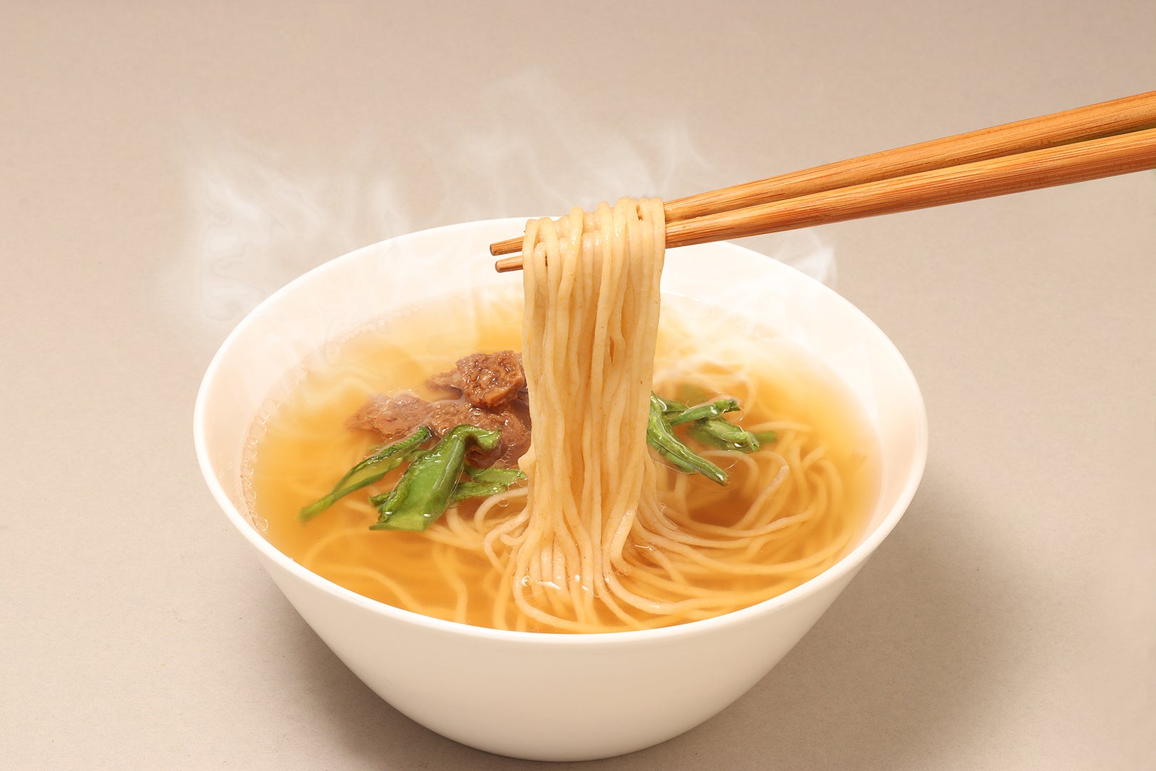 特徴:カムット小麦由来のコシに、酵素技術でモチモチとした食感を加えた食べ応えのある麺を実現